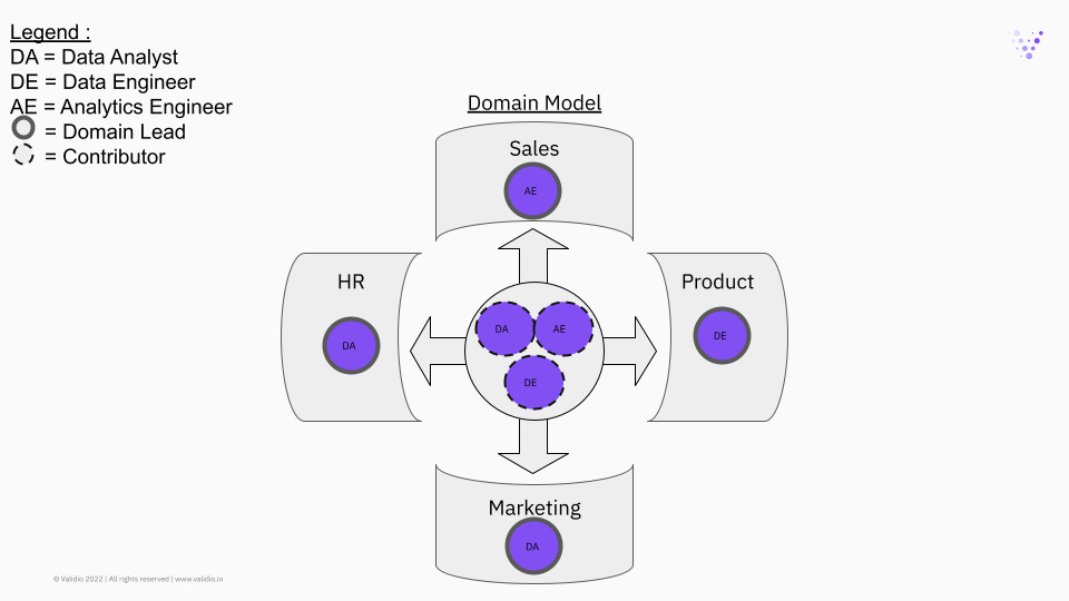 A hybrid approach has also been tested with the “domain model”: In this structure, a senior member of the team is labeled “domain lead” for a specific business area in a domain-based structure. They are then responsible for assigning work to other data engineers and analysts on an individual basis to support business priorities. This model achieves a balance between speed and robustness by letting the data-team retain some autonomy while placing them as close as possible to their respective project owners thereby maximizing domain expertise.